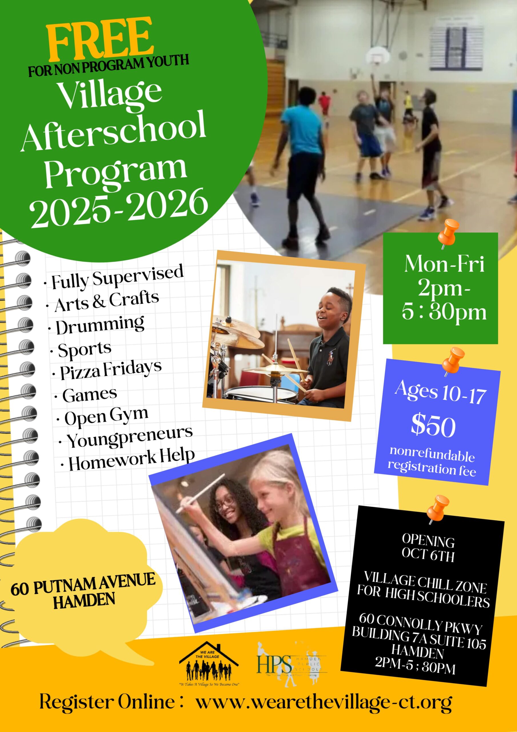 Located at 21 B Pershing Street in Hamden Connecticut, The Village is a safe: secure space for youth to learn, grow and develop.